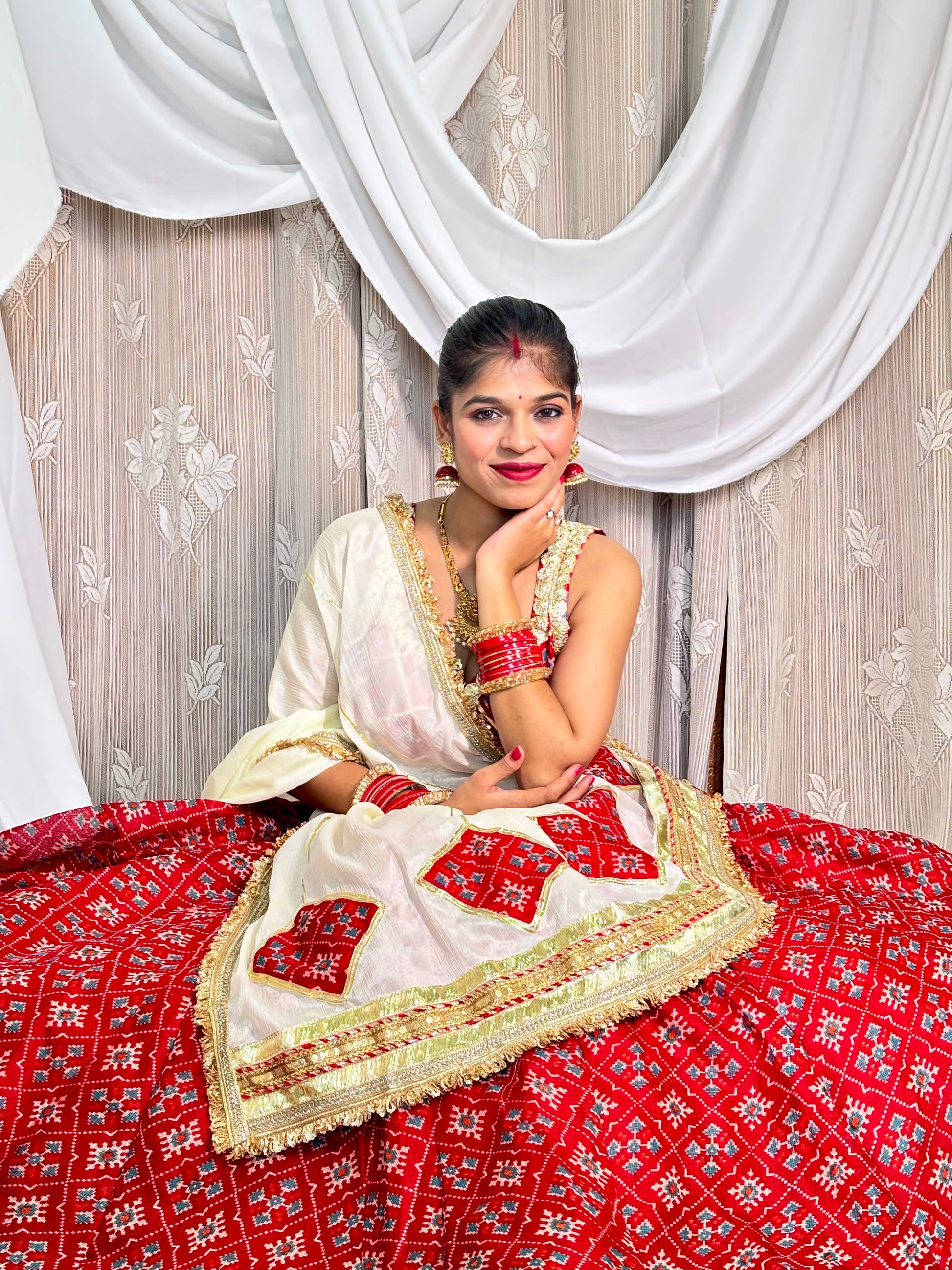 Red and White Lehenga