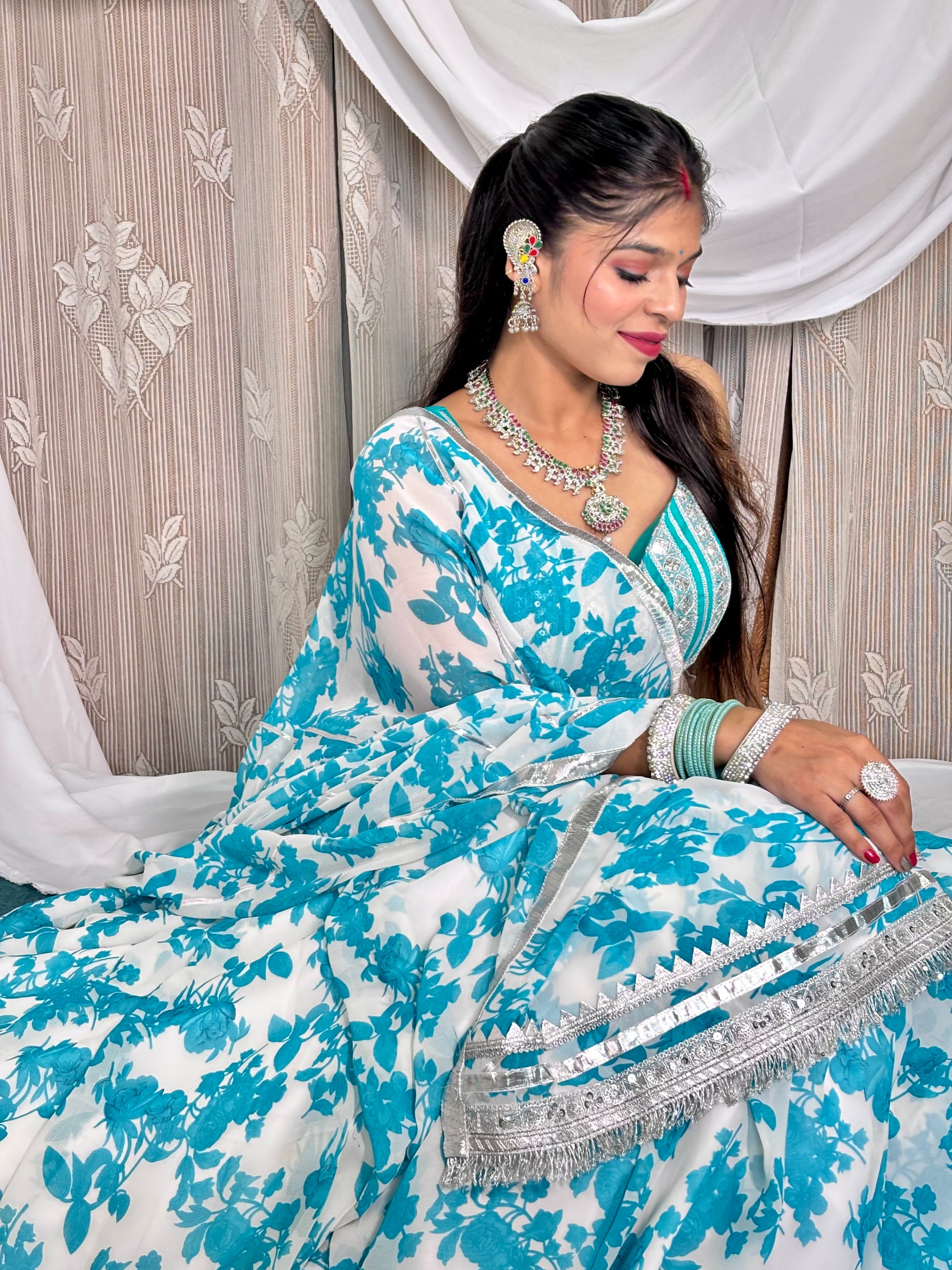 Be the centre of attention with our Floral Lehenga. Made with high quality Fabrics and designed to perfection with love and care.